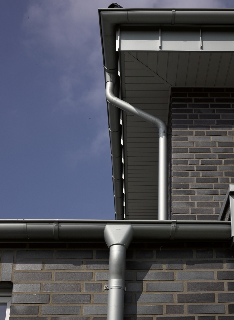 Bei Steildächern besteht das Entwässerungssystem aus Dachrinne und Fallrohr. Die Größe muss ausreichend bemessen sein, um die anfallenden Niederschlagsmengen aufnehmen zu können. Hier greift man in der Regel auf regionale Durchschnittswerte zurück.